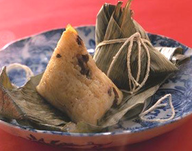最大差別:溫水泡好棗,然后去籽剪成豆大顆粒,再與濾干的糯米混勻,至于調料方面,喜歡甜的可放些糖。 綠豆鴨蛋粽做法 糯米、綠豆各750克,花生米25克,熟咸鴨蛋黃5個。將蛋黃切碎與糯米、綠豆、花生拌勻成餡。取泡過的粽殼葉折成斗狀,填入適量餡料,包好后入鍋加冷水浸沒粽子,煮沸1小時后,改文火煮1小時即可。 皮牛肉粽做法 泡過的糯米、綠豆各1000克,牛肉、陳皮各100克,豬肉末50克,蔥末、姜末、食鹽適量。用豬油將蔥末炒黃,依次放入牛肉、陳皮、豬肉末炒半分鐘后,淋上麻油即成餡。包時先填進拌勻的糯米、綠豆,將餡料夾在中間,再按上述方式煮熟。 百果粽子做法 糯米750克、青梅、菠蘿肉、冬瓜條各25克,西瓜子仁、核桃仁、葡萄干、紅絲各15克,白砂糖300克。先將青梅、菠蘿肉、冬瓜條各用白糖水煮,瀝干水分,然后用白糖腌漬24小時,即成餡。包成五角方底粽,煮50分鐘,離火燜4分鐘即成。 咸香雞肉粽 材料:糯米600克、雞肉800克、薯仔400克、蝦米80克、蒜蓉1湯匙、生抽半湯匙、蔥、鹽、雞精、生粉若干、粽葉適量、粽繩適量。 做法: 1、將雞肉、薯仔和大蔥頭剁碎,加入鹽、蒜、雞精、生粉等調料拌勻。 2、洗凈糯米,浸水半小時。燒熱鍋,用蔥姜蒜爆香,加入糯米和生抽,炒均。 3、用粽葉2張,折疊成漏狀,放入炒香的糯米1湯匙,加入做法1中扮勻的餡料,再加入1湯匙的糯米在上面。 4、將粽繩把粽子扎好,放入高壓煲中煮30分鐘,即可趁熱食。如果是普通煲須煮2小時左右。 裹蒸粽做法 材料: 1、糯米500克、干香菇1朵、蓮子4粒、蝦米10克、綠豆仁50克、栗子2粒、干荷葉1張、干竹葉6片、干堿草2條。 2、咸蛋黃1粒、胡椒粉少許、芋頭30克、排骨、肥肉約100克;五香粉、蔥油、味精鹽少許。 做法: 1、將用料1中的材料泡水至發起為止,其中尖糯米至少泡2個半小時以上,然后用胡椒粉、蔥油、味精、鹽來腌味。芋頭切塊炸過,備用。 2、將肥肉切塊用五香粉腌味約30分鐘。排骨切塊用黑醋、醬油、鹽、味精、面粉腌過備用。 3、將荷葉對撕,粗面朝下,鋪上3片竹葉,放一半的糯米。然后放入香菇、蓮子、蝦米、栗子、咸蛋黃、肥肉、排骨、芋頭、綠豆仁。再放上另一半糯米,將另外3片竹葉蓋上。 4、將荷葉左右兩側對摺抓緊,再前后對摺抓緊包成四角形,用堿草包緊打結即可。 5、用水煮粽子四小時即可上桌。